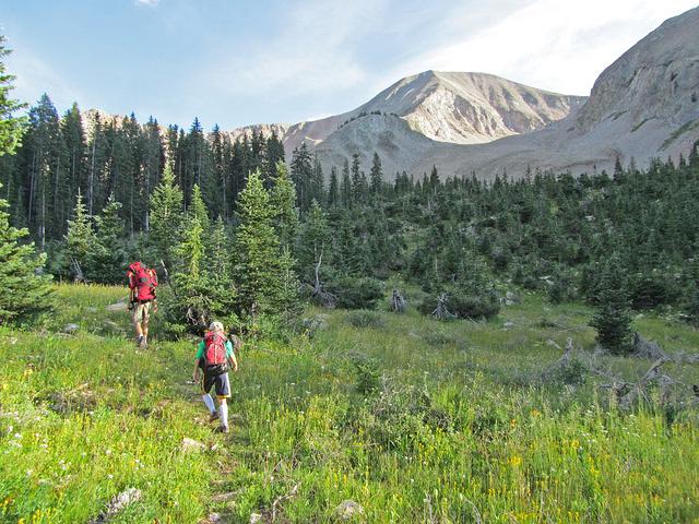 We are planning on base camping at a high elevation camp in the La Sals (either Geyser Pass at 10,500 ft or Warner Lake at 9,300 ft). The views into the surrounding desert country are phenomenal. The project will occur in areas ranging from alpine meadows, aspen and fir stands to areas above timberline and it is usually 30 degrees cooler than the surrounding desert. Participants will be hiking out each morning to the project sites from 1-2 miles and constructing/maintaining trails with provided handtools. It is likely that we will see a large variety of wildlife (deer, elk, coyotes, bears). Many peaks over 11,000 feet are accessible to climb during free time and Warner Lake also presents good fishing.”