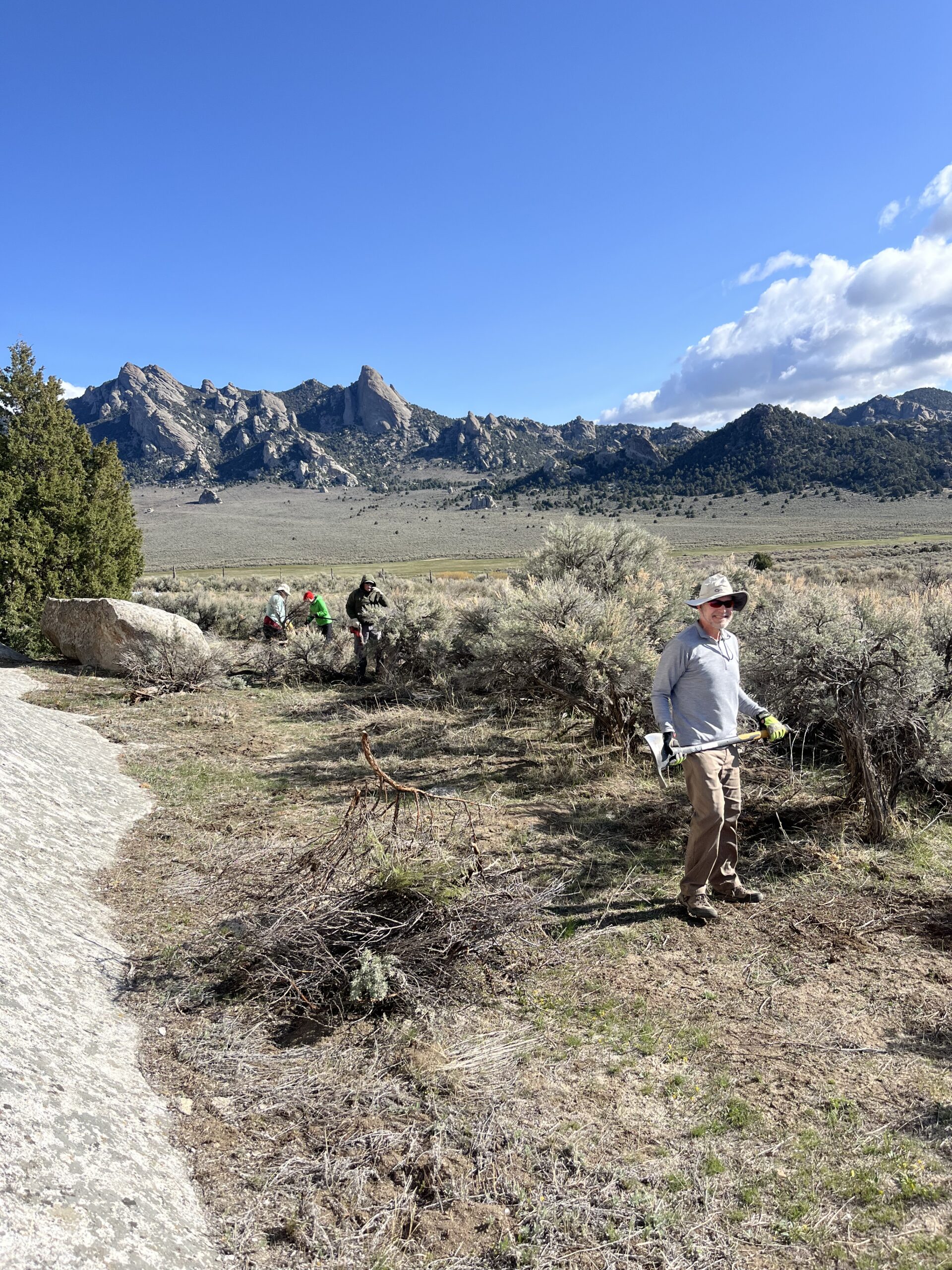 This project is open to women only. The City of Rocks National Reserve acquired a large parcel of 105.08 acres of private property at the beginning of 2023. Initial efforts have been made to make an accessible road, parking lots, and basic infrastructure to enable visitors to begin utilizing the new property. At this time there are only cattle or wildlife trails throughout the property and in fall of 2026 we will begin to construct the trail system on the new property. In total we are looking to construct 8 miles of new trails through the property. This project will focus on constructing pedestrian trails to Camel Rock, Graham Cracker, and Train Rock. These rock formations have potential for the development of nationally significant rock-climbing routes and getting access to these formations is a large focus. These trails are approximately 1 mile in total length. Job duties include cutting and removing vegetation, clearing trail tread, and constructing erosion control structures. This project is very strenuous but the opportunity to construct a trail from the ground up is unique and challenging.